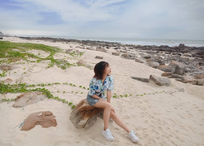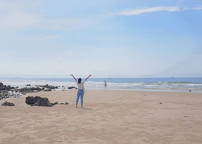 Du khách có thể tạm gác những lo toan, vất vả của cuộc sống thường nhật để tận hượng bầu không khí trong lành và thoải mái bằng cách đi dạo trên bãi cát trắng mịn ngắm nhìn vẻ đẹp tự nhiên, trong sáng của biển cả.