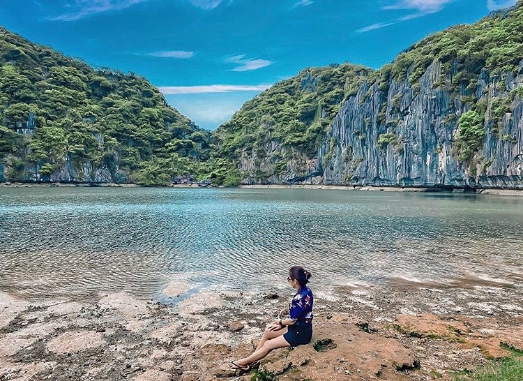 Điểm nhấn đặc biệt nhất của hòn đảo này đó chính là một hồ nước trong xanh, xinh đẹp nằm lọt thỏm giữa những dãy núi đá vôi và cánh rừng nguyên sinh. Đó cũng là lý do mà người ta gọi hòn đảo này là đảo Mắt Rồng. Hồ nước này chính là con mắt đó và  là nơi sở hữu một hệ sinh thái tự nhiên độc đáo nhất vịnh Bắc Bộ.
