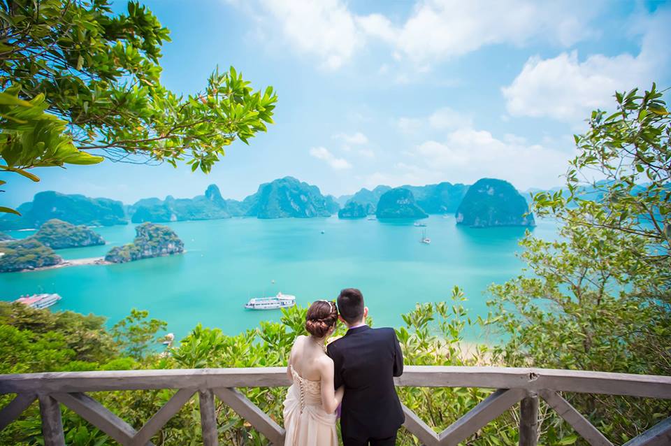 Những bạn trẻ yêu thích cảnh biển thơ mộng với những con tàu lênh đênh, biển xanh, sóng vỗ dịu dàng… nên đến Hạ Long, một địa điểm không thể thích hợp hơn cho việc chụp ảnh cưới của đôi bạn.