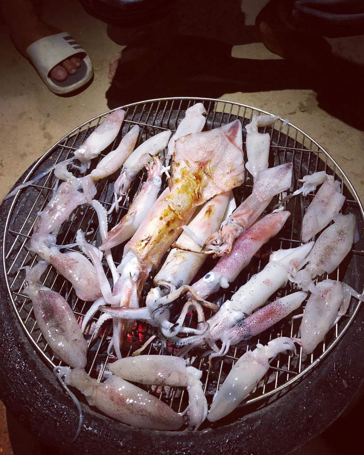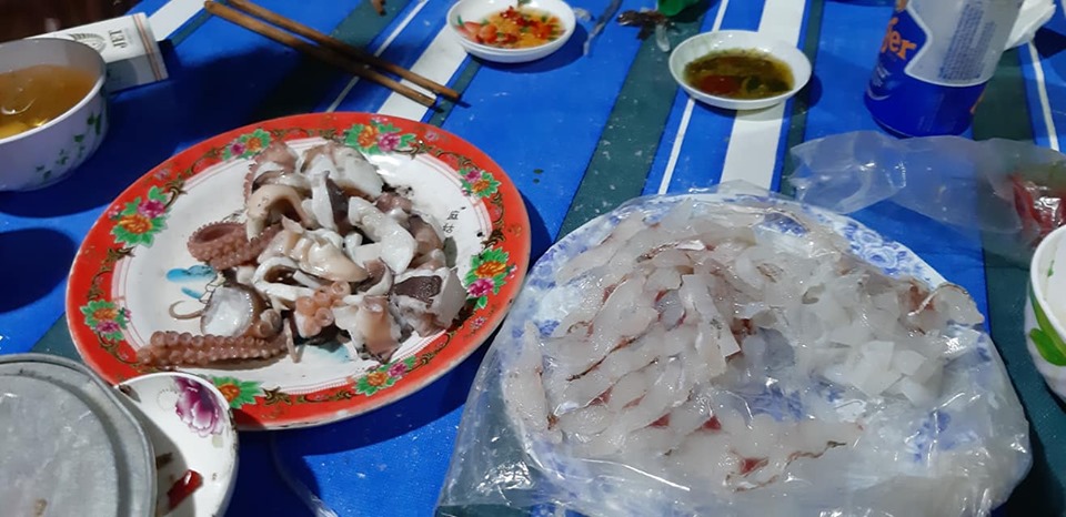 Những con mực tươi sống sau khi được đánh bắt sẽ được làm sạch và nhúng vào nồi nước lẩu thơm ngon được chuẩn bị sẵn để bạn tự mình thưởng thức thành quả ngay trên những con tàu nhỏ vào buổi đêm.