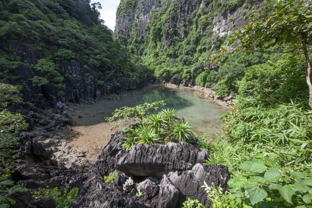 Ngăn thứ ba của hang động có hai cổng nối với Hồ Động Tiên. Thực chất là một phần đáy trũng ngập nước tạo nên một hệ sinh thái vườn biệt lập vừa thông với biển cả.