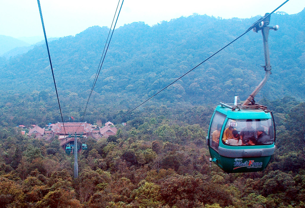 Khi di chuyển bằng cáp treo, du khách sẽ được chiêm ngưỡng khung cảnh tuyệt đẹp của núi rừng tựa như như một bức tranh thiên nhiên sống động với cánh rừng xanh thẳm kéo dài đến đường chân trời. Những tán cây đầy sức sống, uốn lượn theo núi rừng trùng điệp tạo nên vẻ đẹp hoang sơ, mộc mạc nhưng cũng không kém phần kỳ bí. Trên đỉnh núi là những đám mây trôi nhẹ trong nền trời xanh thẳm tạo nên một khung cảnh vô cùng thơ mộng.